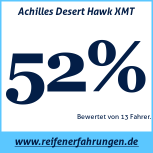 Achilles Desert Hawk XMT AchillesDer Achilles Desert Hawk XMT Reifen wurde von 13 Benutzern bewertet, die ihm eine Gesamtbewertung von 52% gaben. Dieser Reifen wird am häufigsten in den Größen 225 45 R17, 265 65 R17, 265 50 R20 getestet.