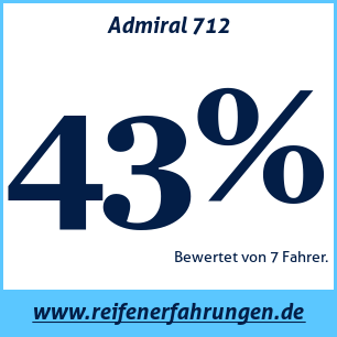 Admiral 712 AdmiralDer Admiral 712 Reifen wurde von 7 Benutzern bewertet, die ihm eine Gesamtbewertung von 43% gaben. Dieser Reifen wird am häufigsten in den Größen 225 45 R17, 225 40 R18, 205 50 R15 getestet.