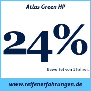 Der Atlas Green HP Reifen wurde von 1 Benutzern bewertet, die ihm eine Gesamtbewertung von 24% gaben. Dieser Reifen wird am häufigsten in den Größen 185 65 R15 getestet.