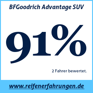 Der BFGoodrich Advantage SUV Reifen wurde von 2 Benutzern bewertet, die ihm eine Gesamtbewertung von 91% gaben. Dieser Reifen wird am häufigsten in den Größen 215 65 R16 getestet.