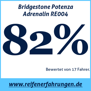 Bridgestone Potenza Adrenalin RE004 BridgestoneDer Bridgestone Potenza Adrenalin RE004 Reifen wurde von 17 Benutzern bewertet, die ihm eine Gesamtbewertung von 82% gaben. Dieser Reifen wird am häufigsten in den Größen 215 45 R17, 225 40 R18, 215 50 R17 getestet.