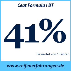 Wenn Sie eine eigene Website zum Thema Auto haben oder ein Reifenlieferant sind, können Sie unsere Ceat Formula I BT Reifenbewertungsplakette auf Ihrer Website platzieren: Reifentest Ceat Formula I BT [png]