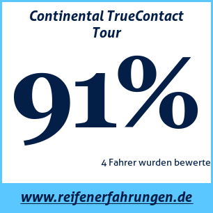 Continental TrueContact Tour ContinentalDer Continental TrueContact Tour Reifen wurde von 4 Benutzern bewertet, die ihm eine Gesamtbewertung von 91% gaben. Dieser Reifen wird am häufigsten in den Größen 225 45 R17, 185 65 R15, 235 55 R17 getestet.