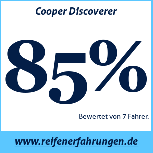 Cooper Discoverer CooperDer Cooper Discoverer Reifen wurde von 7 Benutzern bewertet, die ihm eine Gesamtbewertung von 85% gaben. Dieser Reifen wird am häufigsten in den Größen 265 75 R16, 225 45 R17, 215 70 R16 getestet.