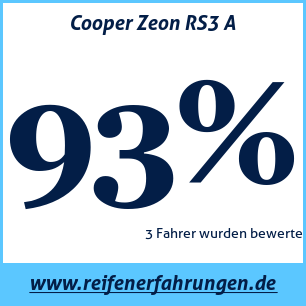 Cooper Zeon RS3 A CooperDer Cooper Zeon RS3 A Reifen wurde von 3 Benutzern bewertet, die ihm eine Gesamtbewertung von 93% gaben. Dieser Reifen wird am häufigsten in den Größen 225 45 R18, 205 55 R16, 215 55 R16 getestet.