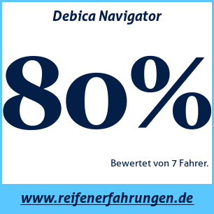 Debica Navigator DebicaDer Debica Navigator Reifen wurde von 7 Benutzern bewertet, die ihm eine Gesamtbewertung von 80% gaben. Dieser Reifen wird am häufigsten in den Größen 225 45 R17, 275 45 R20, 185 60 R14 getestet.
