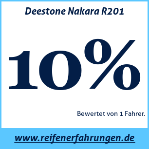 Deestone Nakara R201 DeestoneDer Deestone Nakara R201 Reifen wurde von 1 Benutzern bewertet, die ihm eine Gesamtbewertung von 10% gaben. Dieser Reifen wird am häufigsten in den Größen 185 70 R14 getestet.