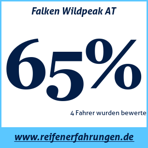 Falken Wildpeak AT FalkenDer Falken Wildpeak AT Reifen wurde von 4 Benutzern bewertet, die ihm eine Gesamtbewertung von 65% gaben. Dieser Reifen wird am häufigsten in den Größen 225 45 R17, 265 65 R17, 225 60 R17 getestet.