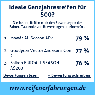 Bewertungen von Ganzjahresreifen für das Auto Fiat 500