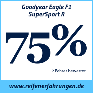 Goodyear Eagle F1 SuperSport R GoodyearDer Goodyear Eagle F1 SuperSport R Reifen wurde von 2 Benutzern bewertet, die ihm eine Gesamtbewertung von 75% gaben. Dieser Reifen wird am häufigsten in den Größen 225 45 R17, 265 35 R19 getestet.