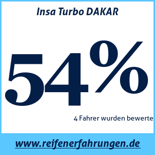 Insa Turbo DAKAR Insa TurboDer Insa Turbo DAKAR Reifen wurde von 4 Benutzern bewertet, die ihm eine Gesamtbewertung von 54% gaben. Dieser Reifen wird am häufigsten in den Größen 225 45 R17, 205 55 R16, 235 60 R16 getestet.
