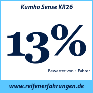 Kumho Sense KR26 KumhoDer Kumho Sense KR26 Reifen wurde von 1 Benutzern bewertet, die ihm eine Gesamtbewertung von 13% gaben. Dieser Reifen wird am häufigsten in den Größen 195 65 R15 getestet.