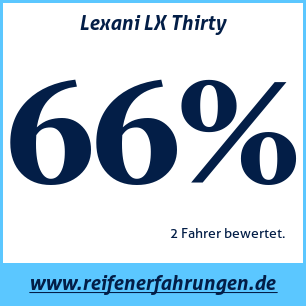 Der Lexani LX Thirty Reifen wurde von 2 Benutzern bewertet, die ihm eine Gesamtbewertung von 66% gaben. Dieser Reifen wird am häufigsten in den Größen 225 45 R17, 225 65 R17 getestet.