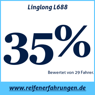 Linglong L688 LinglongDer Linglong L688 Reifen wurde von 29 Benutzern bewertet, die ihm eine Gesamtbewertung von 35% gaben. Dieser Reifen wird am häufigsten in den Größen 225 45 R17, 215 55 R16, 205 50 R17 getestet.
