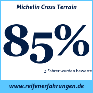 Michelin Cross Terrain MichelinDer Michelin Cross Terrain Reifen wurde von 3 Benutzern bewertet, die ihm eine Gesamtbewertung von 85% gaben. Dieser Reifen wird am häufigsten in den Größen 225 45 R17, 265 65 R17, 245 70 R16 getestet.