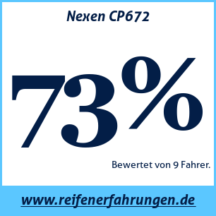 Nexen CP672 NexenDer Nexen CP672 Reifen wurde von 9 Benutzern bewertet, die ihm eine Gesamtbewertung von 73% gaben. Dieser Reifen wird am häufigsten in den Größen 225 45 R17, 225 50 R17, 205 55 R16 getestet.