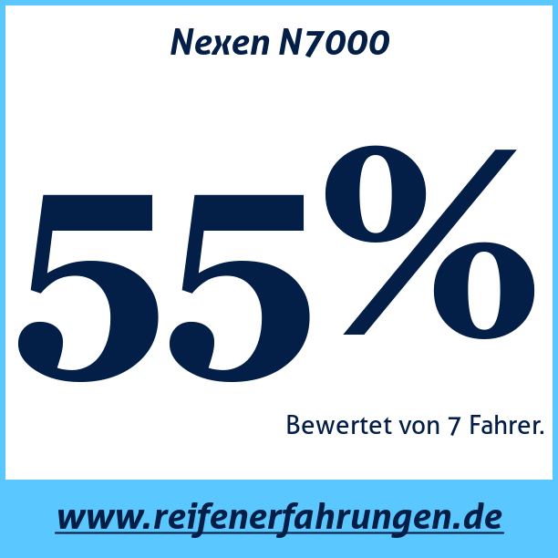 Nexen N7000 NexenDer Nexen N7000 Reifen wurde von 7 Benutzern bewertet, die ihm eine Gesamtbewertung von 55% gaben. Dieser Reifen wird am häufigsten in den Größen 235 45 R17, 225 45 R17, 215 50 R17 getestet.