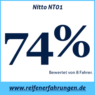 Nitto NT01 NittoDer Nitto NT01 Reifen wurde von 8 Benutzern bewertet, die ihm eine Gesamtbewertung von 74% gaben. Dieser Reifen wird am häufigsten in den Größen 215 45 R17, 225 45 R17, 305 35 R18 getestet.