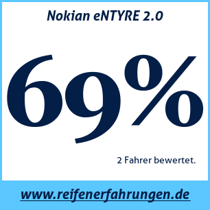 Nokian eNTYRE 2.0 NokianDer Nokian eNTYRE 2.0 Reifen wurde von 2 Benutzern bewertet, die ihm eine Gesamtbewertung von 69% gaben. Dieser Reifen wird am häufigsten in den Größen 215 55 R17, 195 65 R15 getestet.