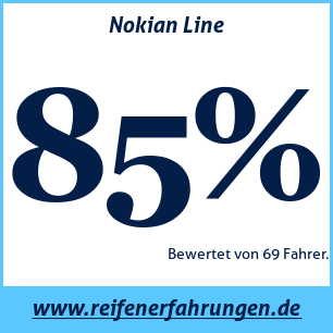 Der Nokian Line Reifen wurde von 69 Benutzern bewertet, die ihm eine Gesamtbewertung von 85% gaben. Dieser Reifen wird am häufigsten in den Größen 205 55 R16, 225 45 R17, 195 65 R15 getestet.