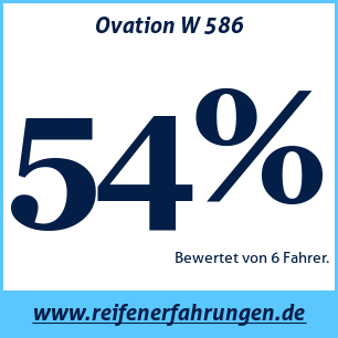 Ovation W 586 OvationDer Ovation W 586 Reifen wurde von 6 Benutzern bewertet, die ihm eine Gesamtbewertung von 54% gaben. Dieser Reifen wird am häufigsten in den Größen 225 45 R17, 225 40 R18, 225 45 R18 getestet.