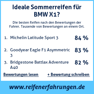 Bewertungen von Sommerreifen für das Auto BMW X1