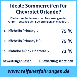 Bewertungen von Sommerreifen für das Auto Chevrolet Orlando