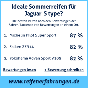 Wenn Sie eine eigene Website zum Thema Auto haben, oder wenn Sie ein Reifenlieferant sind, können Sie unsere Plakette zur Bewertung von Autoreifen auf Ihrer Website Jaguar S type platzieren: Test der Reifen auf Jaguar S type [png]
