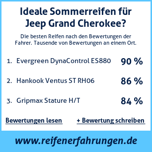 Bewertungen von Sommerreifen für das Auto Jeep Grand Cherokee