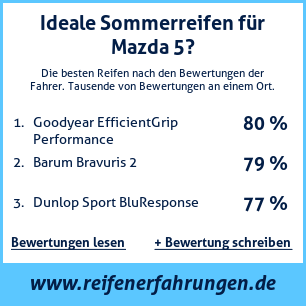 Bewertungen von Sommerreifen für das Auto Mazda 5