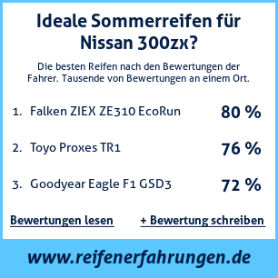 Wenn Sie eine eigene Website zum Thema Auto haben, oder wenn Sie ein Reifenlieferant sind, können Sie unsere Plakette zur Bewertung von Autoreifen auf Ihrer Website Nissan 300zx platzieren: Test der Reifen auf Nissan 300zx [png]