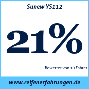 Sunew YS112 SunewDer Sunew YS112 Reifen wurde von 10 Benutzern bewertet, die ihm eine Gesamtbewertung von 21% gaben. Dieser Reifen wird am häufigsten in den Größen 225 45 R17, 215 55 R16, 205 55 R16 getestet.
