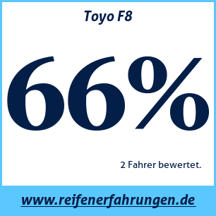Toyo F8 ToyoDer Toyo F8 Reifen wurde von 2 Benutzern bewertet, die ihm eine Gesamtbewertung von 66% gaben. Dieser Reifen wird am häufigsten in den Größen 225 45 R17, 185 70 R14 getestet.