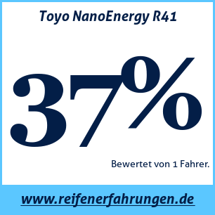 Wenn Sie eine eigene Website zum Thema Auto haben oder ein Reifenlieferant sind, können Sie unsere Toyo NanoEnergy R41 Reifenbewertungsplakette auf Ihrer Website platzieren: Reifentest Toyo NanoEnergy R41 [png]