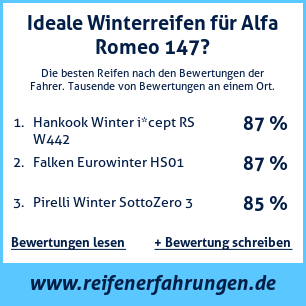 Bewertungen von Winterreifen für das Auto Alfa Romeo 147