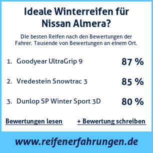 Bewertungen von Winterreifen für das Auto Nissan Almera